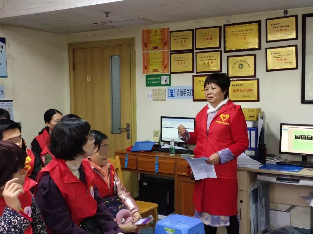 我们这个粉红丝带志愿者团队的阵容非常强大,我们只有一个共同的目标,就是让广大病友早日治愈康复出院!心理咨询师志愿者同时也是我们的护理前辈张锦琼也积极参与了这个志愿服务活动,她从心理干预的角度为志愿者们认真讲解了克服乳腺癌的多种方式、方法。