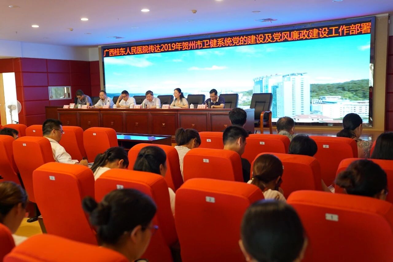 5月31日下午,广西91论坛 在门诊外科综合楼23楼大会议室召开2019年党的建设暨党风廉政建设工作会议,全院中层及以上干部、全体党员、团委委员共200余人参加会议,会议由党委副书记、院长孔勇主持。