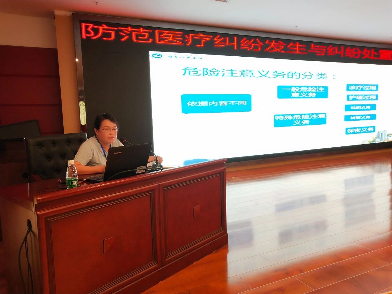 医患关系协调办公室副主任邱丽芳作专题授课《防范医疗纠纷发生及纠纷处置要点》