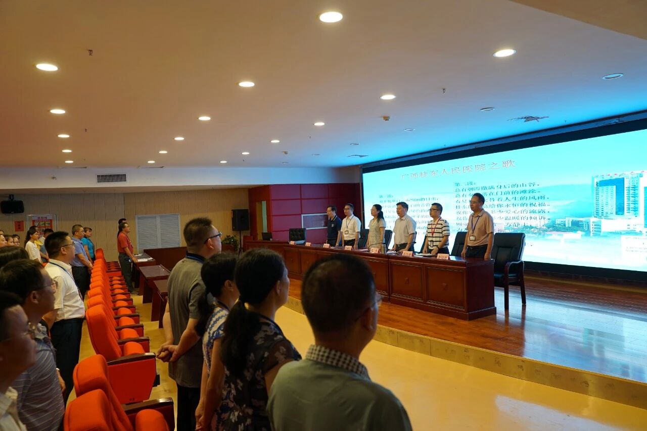 大会开始,全体与会人员起立热情歌唱院歌“桂东之歌”,展现了良好的精神风貌及和谐的91论坛 氛围。91论坛 领导班子以及各职能部门负责人与2019届新员工互相做了自我介绍,更快地打破陌生感,像家人一般寒暄问候,会场气氛热烈。