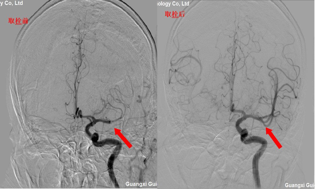 抽吸一次,复查造影血流重建,观察5分钟后复查造影,未见明显血管狭窄及再次闭塞。