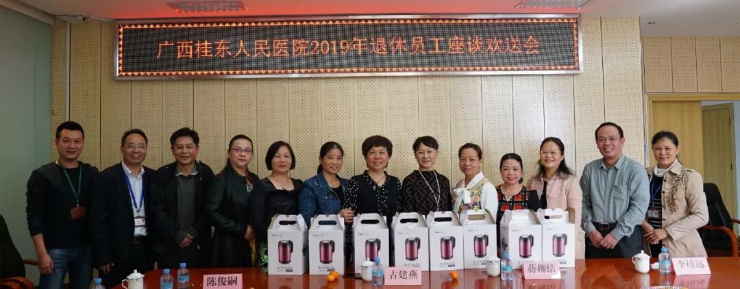 党委书记蒋柳结、工会主席李培远、工会副主席梁桂才、古建燕,人事科科长陈俊嗣以及退休员工们欢聚一堂。
