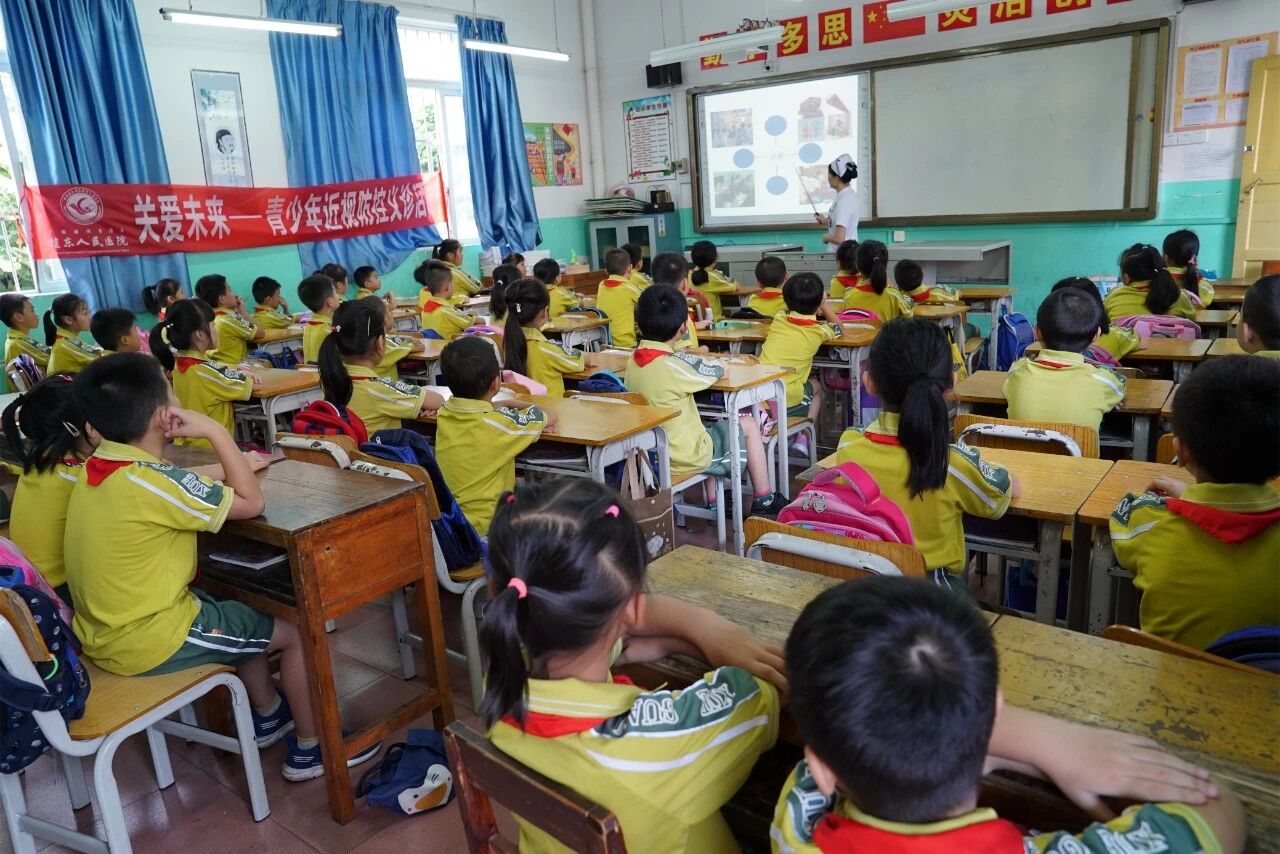 近视防控走进大东路小学,广西91论坛 视光专家与小学生面对面