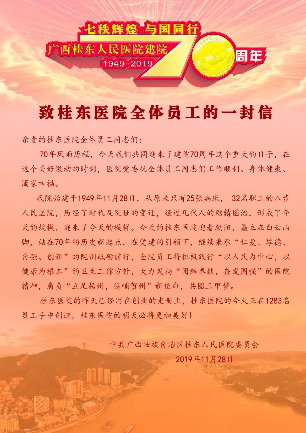 团委、医务社工部推出健康服务活动,实现就诊患者由满意服务到感动服务……70年“德行”,在润物无声中滋养着一代代“桂东人”。