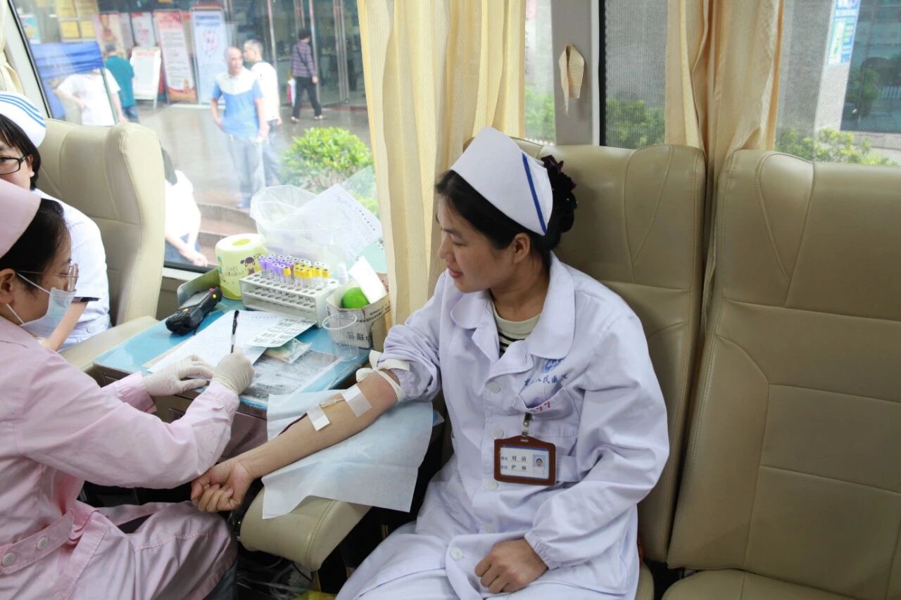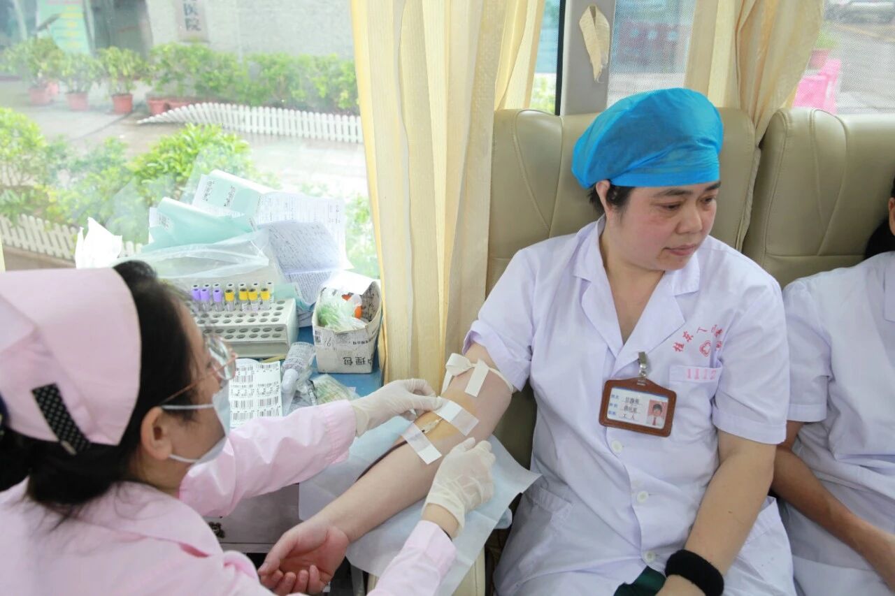2019年5月31日无偿献血活动在广西91论坛 门诊楼前进行。前来献血的91论坛 职工络绎不绝,每次的无偿献血活动都得到全院职工的积极响应,他们当中不仅有医生、护士,还有行政和后勤管理人员。