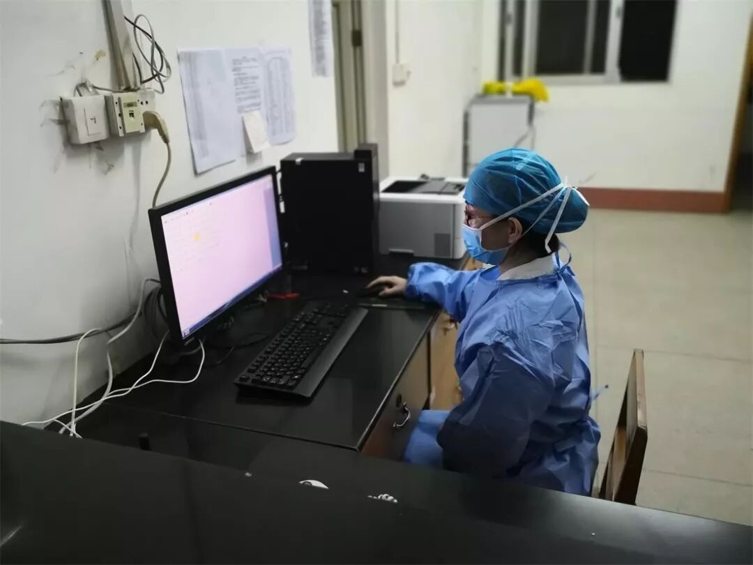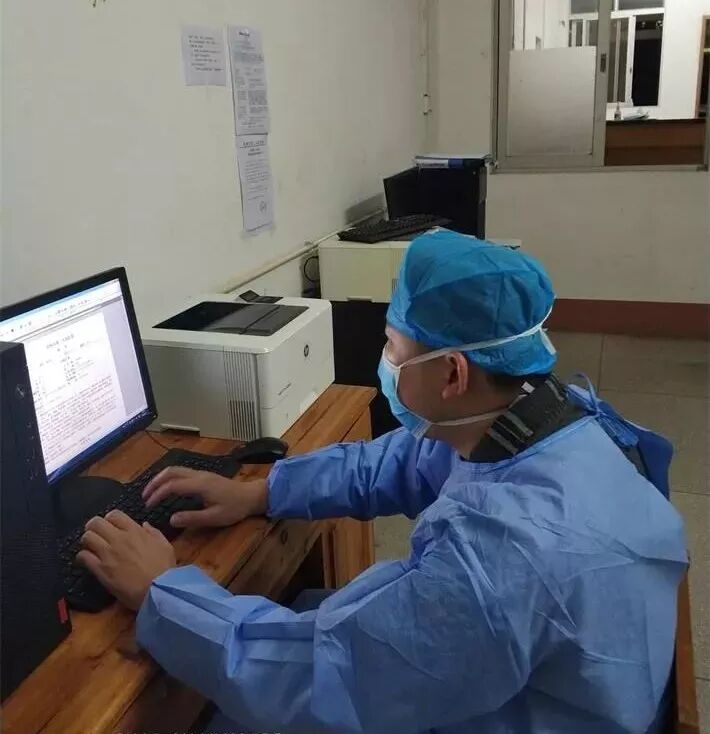 蒋亚灯在非隔离区域整理医嘱