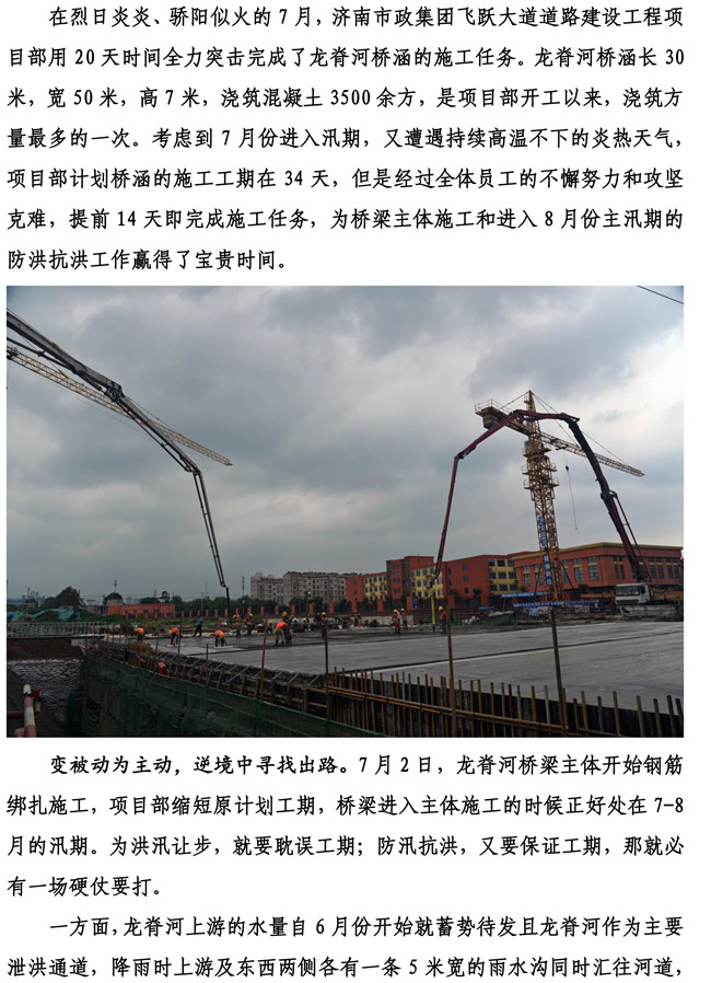 保持执着干劲 逆境寻找出路——济南市飞跃大道道路建设工程龙脊河桥梁主体结构全部完成