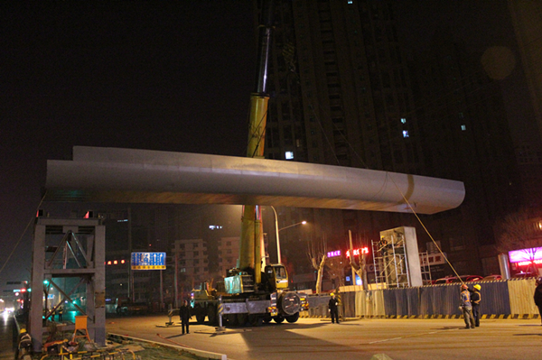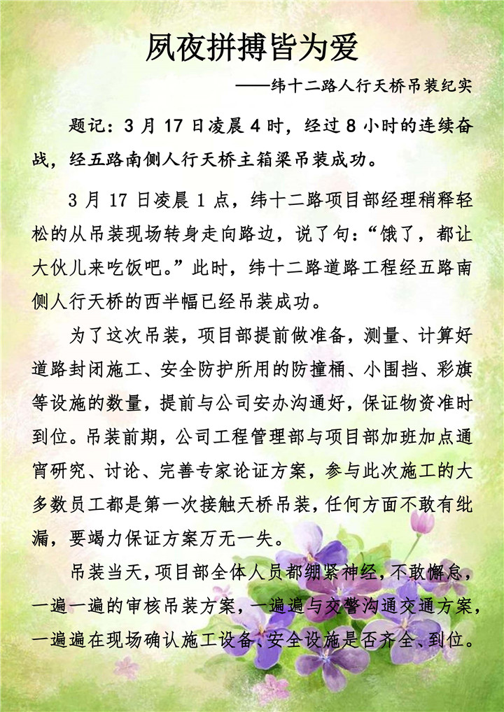 夙夜拼搏皆为爱------纬十二路人行天桥吊装纪实