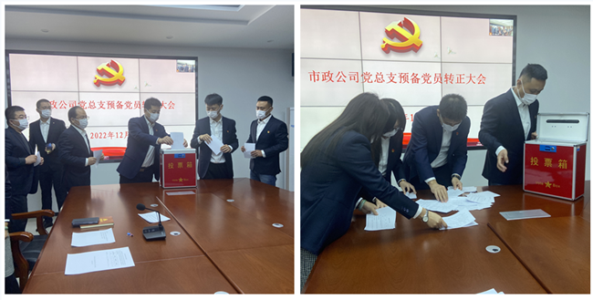 12月6日,市政公司党总支第一党支部、第二党支部先后召开预备党员转正会议,讨论曹凯、孔庆岩2名同志的转正事宜。各项目部党员视频参会。
