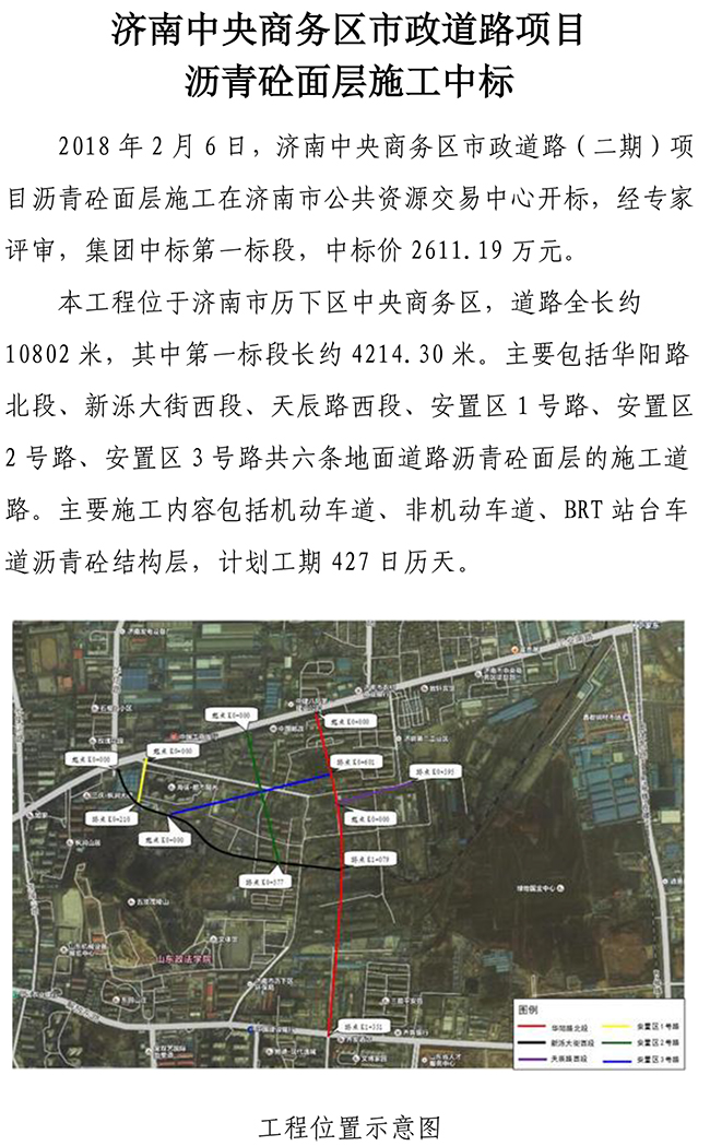济南中央商务区市政道路项目 沥青砼面层施工中标