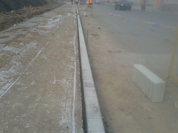 济南市市政工程有限公司龙脊河工程进行路沿石安装施工