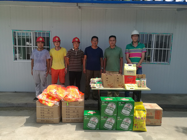 8月4日上午,济南市市政工程有限公司工会驻外帮扶小组工作人员和安办人员来到济宁建设工地,为驻外工地职工送去了慰问品,并表达了公司领导的关心和问候。驻外帮扶小组工作人员询问了驻外职工工作、生活和在济家庭情况,需要帮扶的问题记录在案,并按照领导指示,会尽心尽力解决驻外职工的后顾之忧。公司安办为项目部添置了安全防护用品,并检查了现场安全文明施工情况和防汛措施,给予了安全防范指导意见。